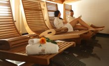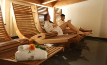 | Oaza miru za dve ali več oseb / zakup celotnega ambienta savn za 2 uri (turška, infra, finska savna - tuš terapija - jacuzzi - solarij - penina - sadje - wellness čaj). - Program, ki vam omogoča zakup celotnega ambienta. Vključuje nepozabno sproščanje v jacuzziju ob kozarčku penine in svežem sadju. Samo za vaju (ali vaše prijatelje) je rezervirano VIP savnanje v Termalni kopeli z aromaterapijo – turški savni (kjer si lahko naredite piling telesa), infra rdeči in finski savni s kromaterapijo. Med savnanjem lahko uporabljate tuš terapijo, kjer bo izmenična temperatura tople in mrzle vode krepila vaš imunski sitem. Na koncu programa pa imate možnost uživati v objemu toplih sončnih žarkov našega stoječega solarija. Program lahko rezervirate tudi za več oseb. |