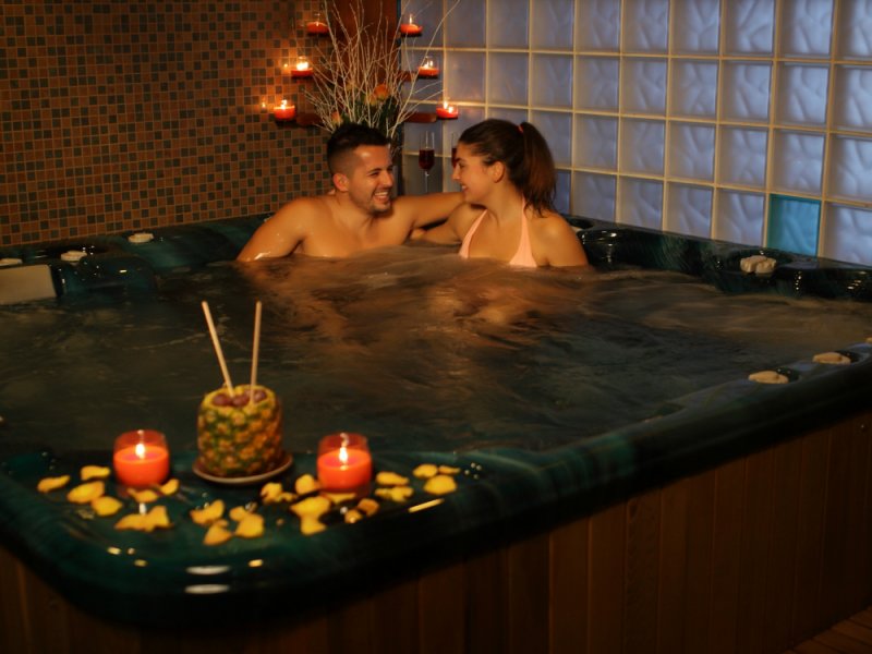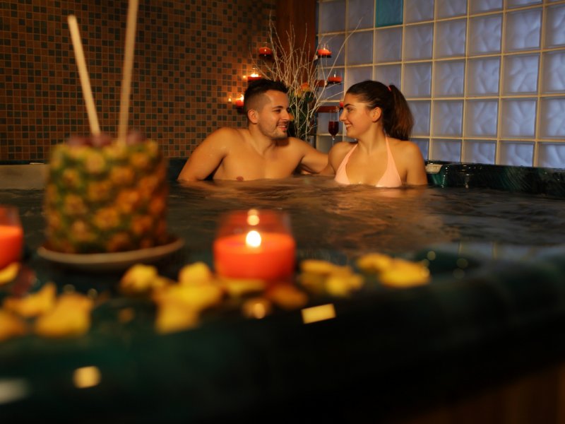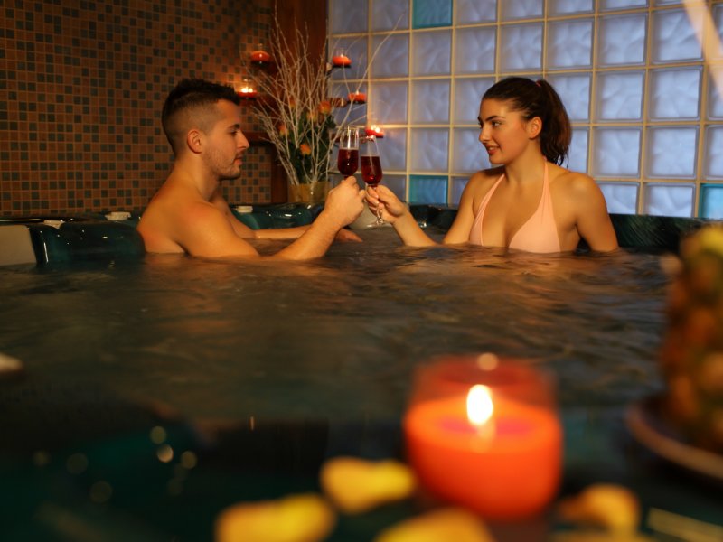 | Jacuzzi za dve ali več oseb (do 6 oseb) / 90 min (penina – wellness čaj) - Romantično razvajanje v soju sveč. Sproščajte se v hidromasažnem bazenu ob kozarčku penine. Kombinacija vodne kopeli, zračnih in vodnih curkov vam napolni telo z energijo, vaša koža pa postane bolj elastična. |